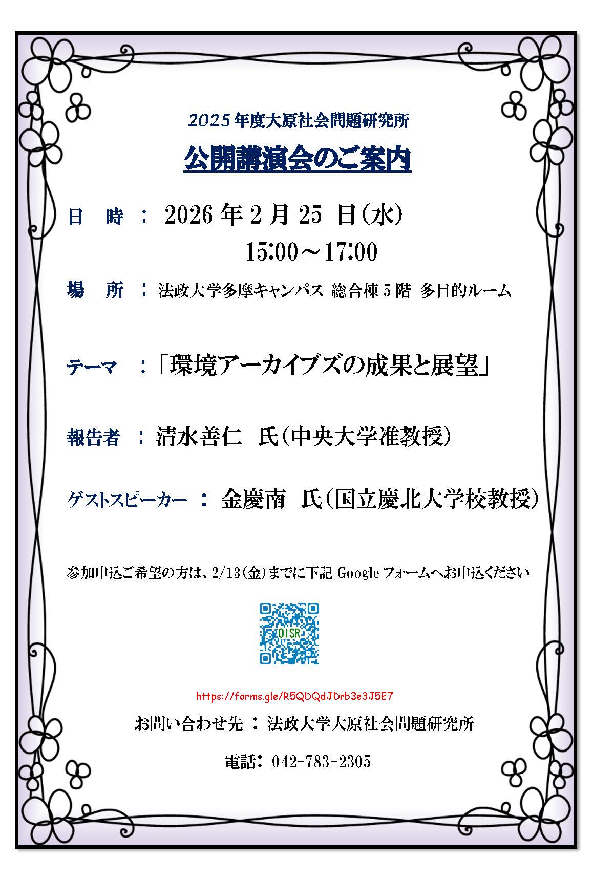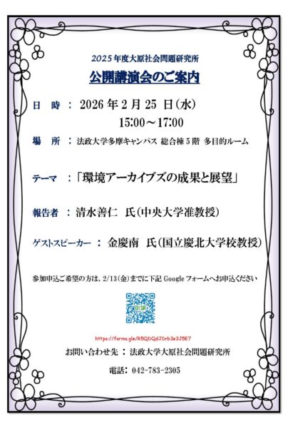 2025年度大原社会問題研究所公開講演会のご案内